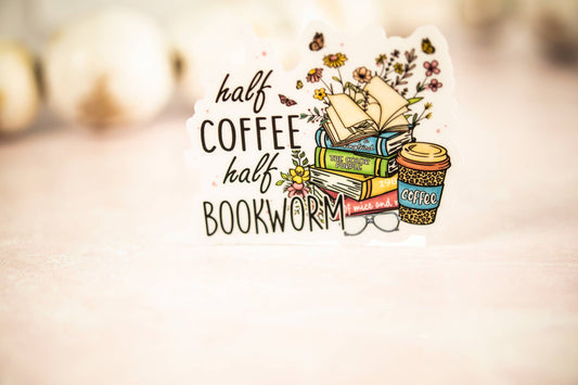 Half Coffee Half Bookworm, Floral Vinyl Sticker, 3x3 in.