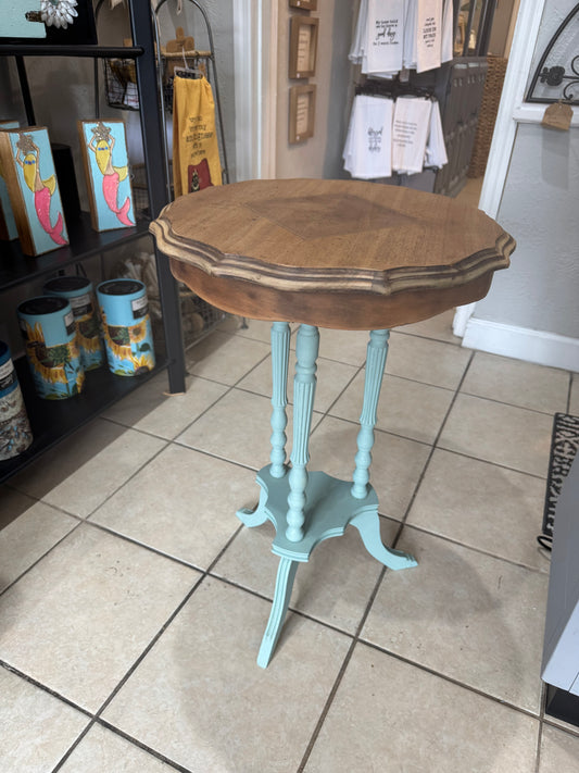 Small round table natural wood top with painted bottom