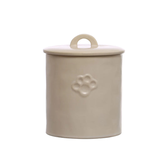 Debossed Stoneware Treat Canister w/ Paw Print (Each One Will Vary)