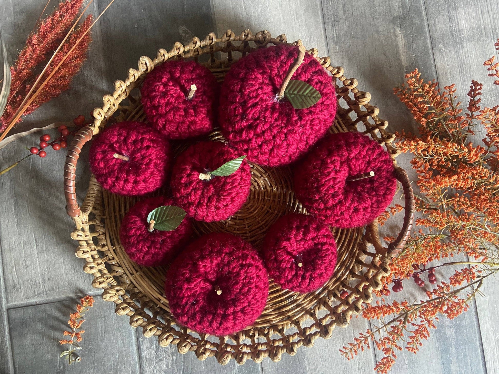 Decorate your home for fall with a bushel of farmhouse decor! These handmade, crochet apples are perfect for bowl fillers, mantel decor, centerpiece flair, and more. Mix and match sizes to give your space extra, classic autumn dimension. Size Jumbo- 5” height x 3.5”. Stems are made with artificial twigs. As these are handmade, sizing may vary but as true to described as possible.