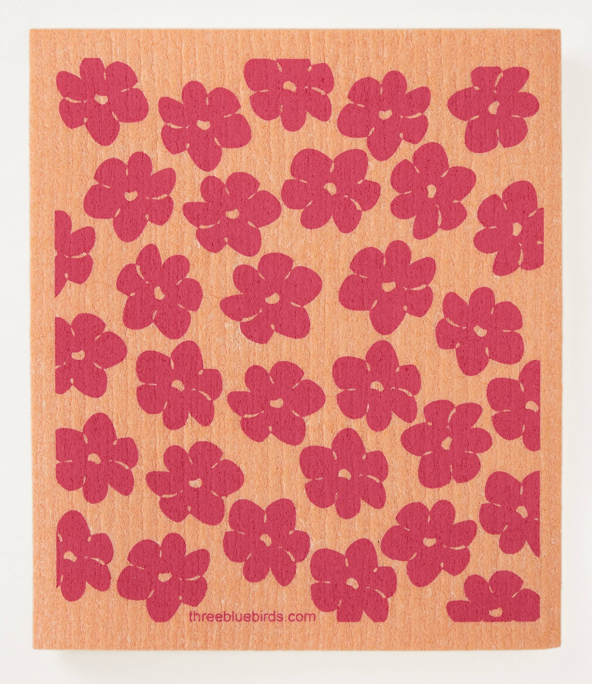 Pink Poppies on Orange Swedish Dishcloth